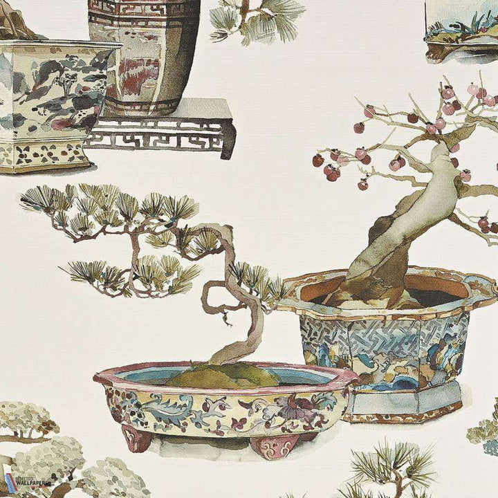 Kyoto wallpaper by Pierre Frey. This wallpaper is styled according to the classic lines of Pierre Frey prints. Kyoto takes us on a journey to Japan with these beautiful bonsais with pots printed on vinyl with a linen look in delicate shades.
