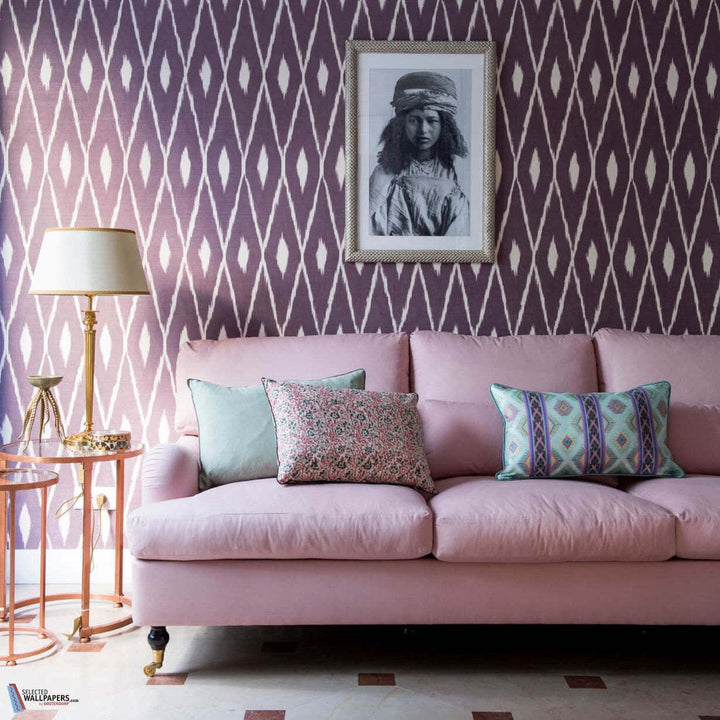 Mako wallpaper by Pierre Frey. In the style of an ikat, this two-tone geometric pattern gives a subtly blurred effect to this wall covering. Available in a range of colors. Wallpaper Mako Pierre Frey Double Jeux collection.