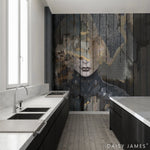 The Wooden Face exclusive wallpaper by Daisy James. This wallpaper is like a large painting on the wall with a hidden woman's face. It adds an authentic atmosphere to the space. This wallpaper is custom made.
