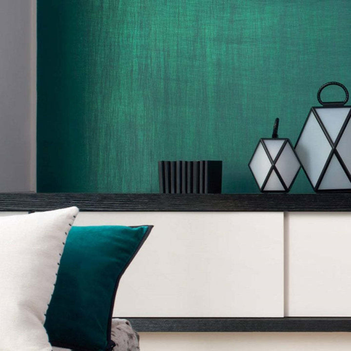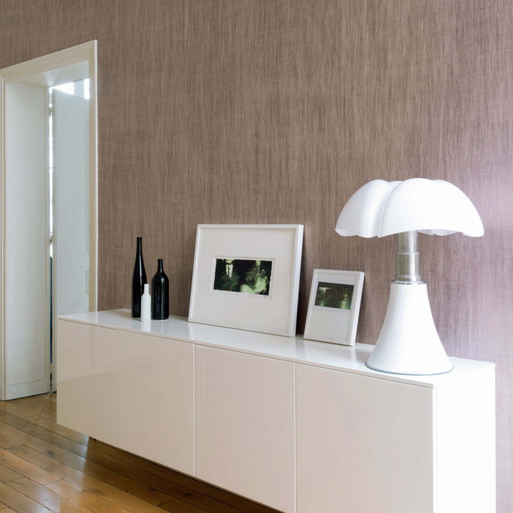 Vega luxury wallpaper from Elitis. Metallic radiation is influenced by changing fibers and creates a magical depth on this wallpaper. Available in a series of colors, it is always suitable for your interior.