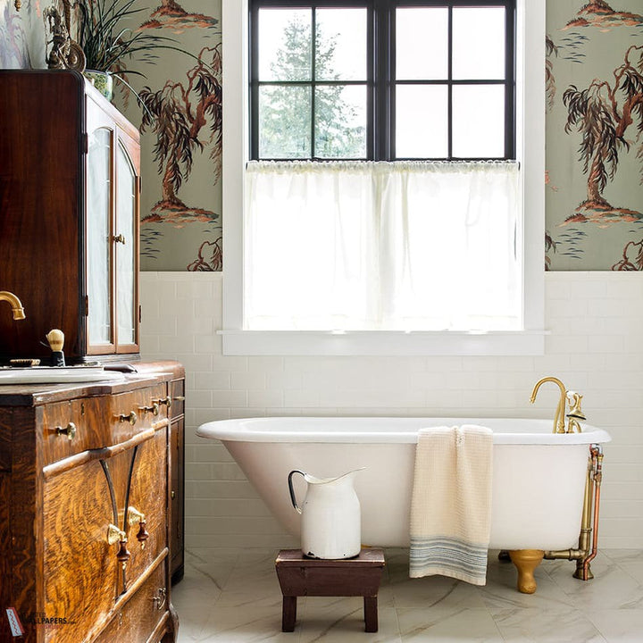 Zeus wallpaper House of Hackney. This wallpaper winks at traditional chinoiserie designs. Elegant cranes and beautiful willow trees have an enchanting effect. Wallpaper Zeus House of Hackney