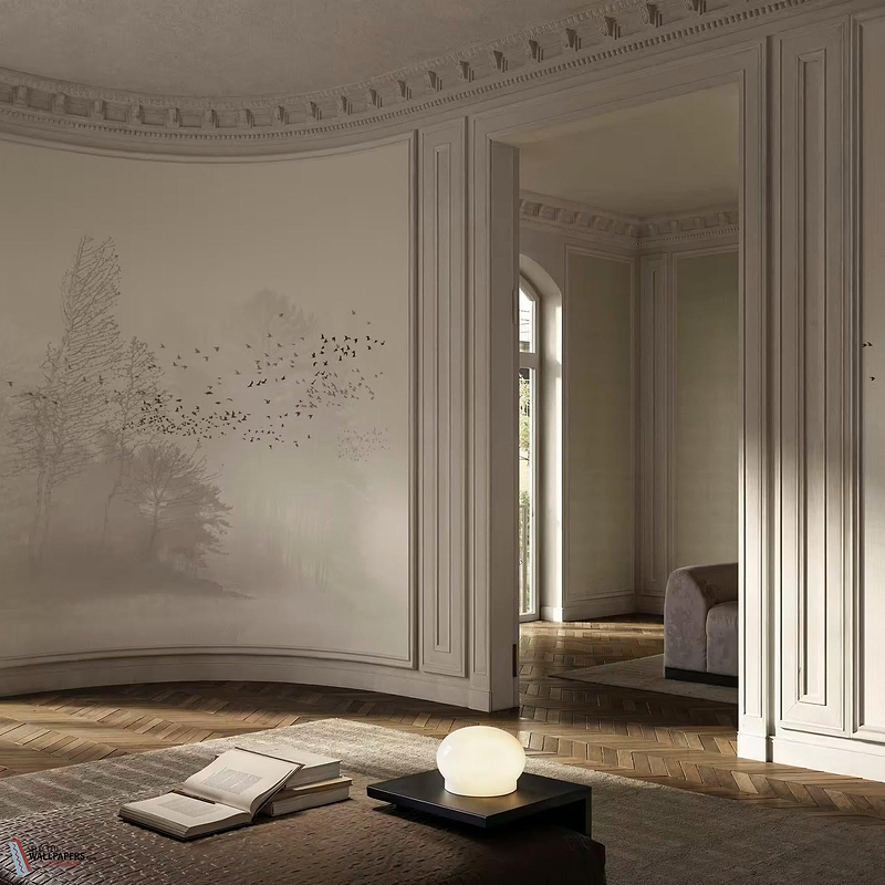 This Aleteo wallpaper brings an artistic, meditative expression to your interior. The fleeting birds and misty trees create an atmosphere of timeless stillness, perfect for minimalist, Scandinavian or contemporary living styles. The design works particularly well in bedrooms, meditation spaces or behind sofas in living rooms, where it functions as a picturesque focal point. The subtle grey tones ensure that the Aleteo wallpaper appears both calming and visually intriguing, without overwhelming the space.