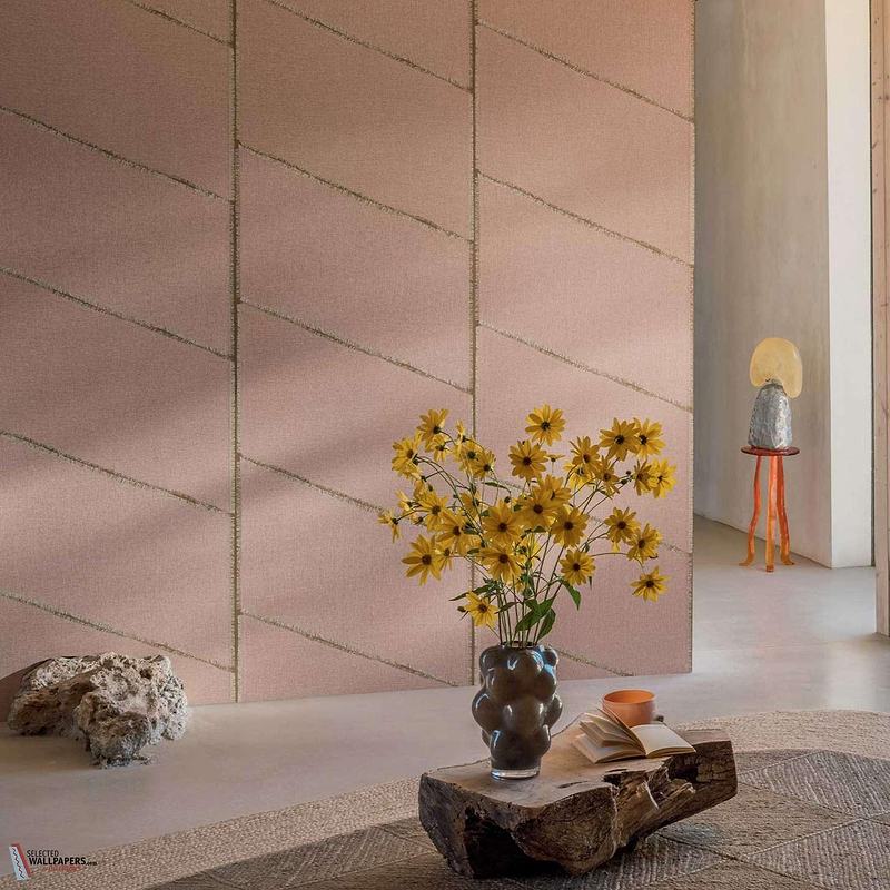 The geometric planes of the Hera wallpaper are designed to create subtle depth. This effect makes the wallpaper visually interesting and ensures that the space feels larger and more dynamic. The diagonal lines give a sense of movement and energy, giving your interior a playful yet refined look. This wallpaper is perfect for those who want their interior walls to speak without being too overwhelming.