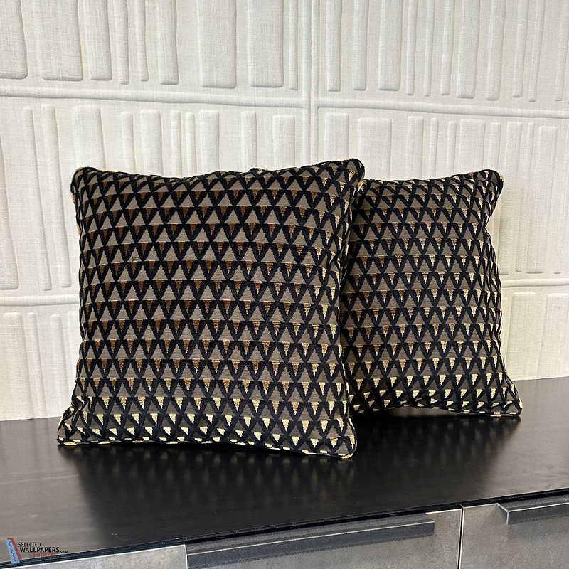 Amuleto kussen Dedar. Een kussen gemaakt met de Dedar stof Amuleto. Een jacquardfleweel dat speelt met geometrische driehoeken die zich oneindig herhalen. De achterkant van het kussen is met dezelfde stof en bevat een blinde rits. Kussen Amuleto Dedar.