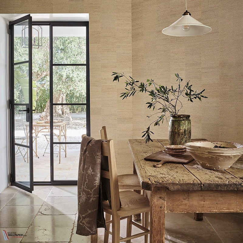 Het Braid Mosaic behang beweegt zich in een palet van beige, zandkleurige en licht bruine tinten, met subtiele variaties die diepte creëren. Deze neutrale grondtoon sluit naadloos aan bij de verfijnde esthetiek van de Collage IV behangcollectie, waar ambachtelijke texturen en tijdloze ontwerpen centraal staan.