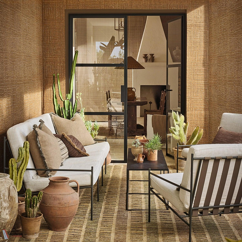 In een interieur brengt het Kuba behang rust en visuele diepte zonder dominant te worden. De aardse tonen en gestileerde rechthoeken passen uitstekend bij zowel moderne minimalistische ruimtes als bij interieurs met een etnische of vintage inspiratie. Het patroon creëert beweging op de wand zonder overdadig te zijn, waardoor het Kuba behang een verfijnde achtergrond vormt die zowel eigentijds als tijdloos aanvoelt. De subtiele textuurindruk geeft elke ruimte een warme, tactiele dimensie.