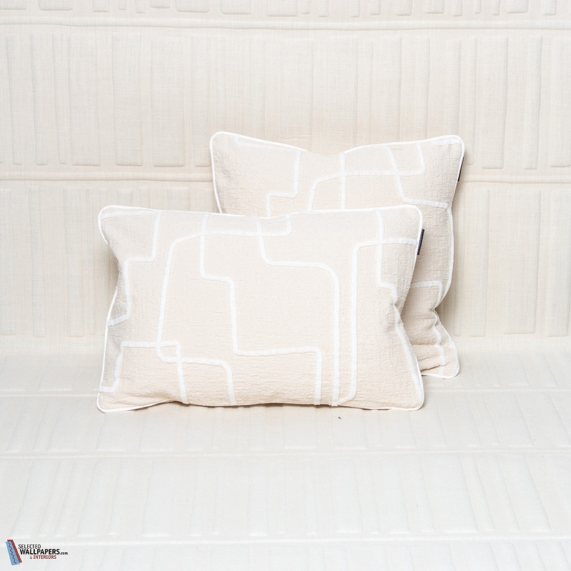 Liberabirinto kussen Dedar. Een kussen gemaakt met de stof Liberabirinto. Een toont een driedimensionaal motief van zacht fluweel. De achterkant van het kussen is met dezelfde stof en bevat een blinde rits. Kussen Liberabirinto Dedar Selected Cushions collectie.