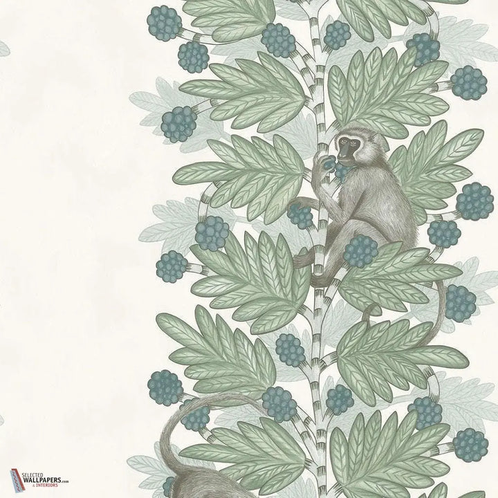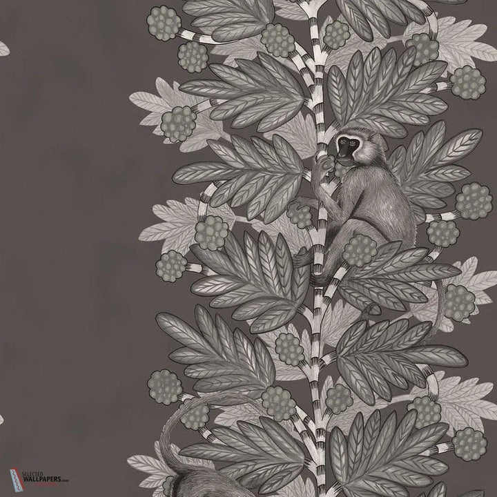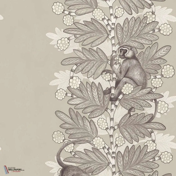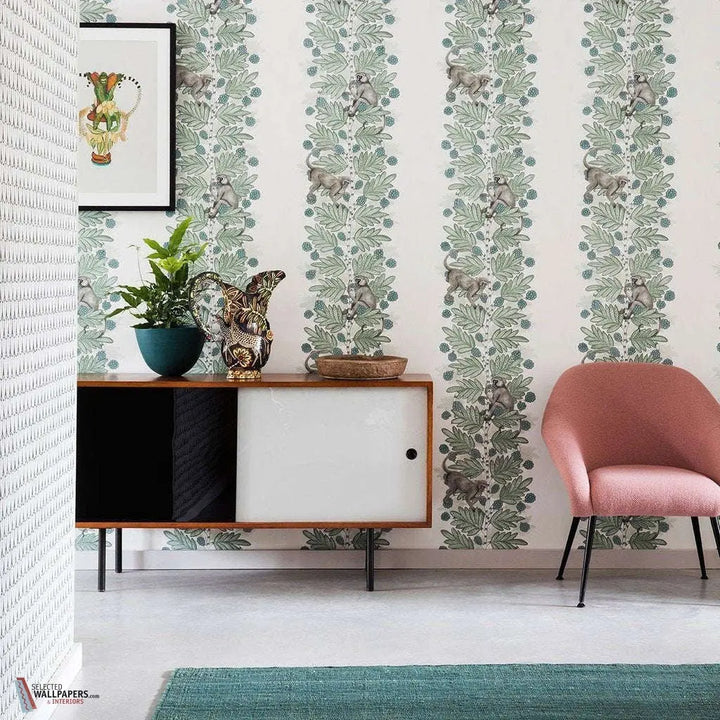 Acacia behang van Cole and Son. Het behang is een blijvende aanblik in Afrika. Apen waren inspiratie voor dit opvallende en gemoedelijke behang. Een breed gestreept effect wordt gecreëerd met balderen en voegt drama toe aan het behang. Breed toepasbaar in verschillende interieur stijlen.