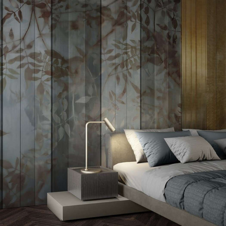 Amelié behang van Glamora. Dit behang heeft een natuurlijk uiterlijk met takken en bladeren dat middels een kamerscherm tot leven komt. Het geeft de wand een aangename diepte.