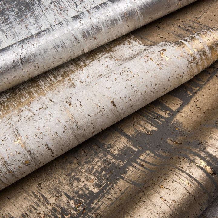 Antares ANT 1 behang van Omexco. Het kurk behang onthult lichten verborgen achter schaduwen en fascineert door de combinatie van metallic en kurk. Een luxe behang met een industrieel karakter.