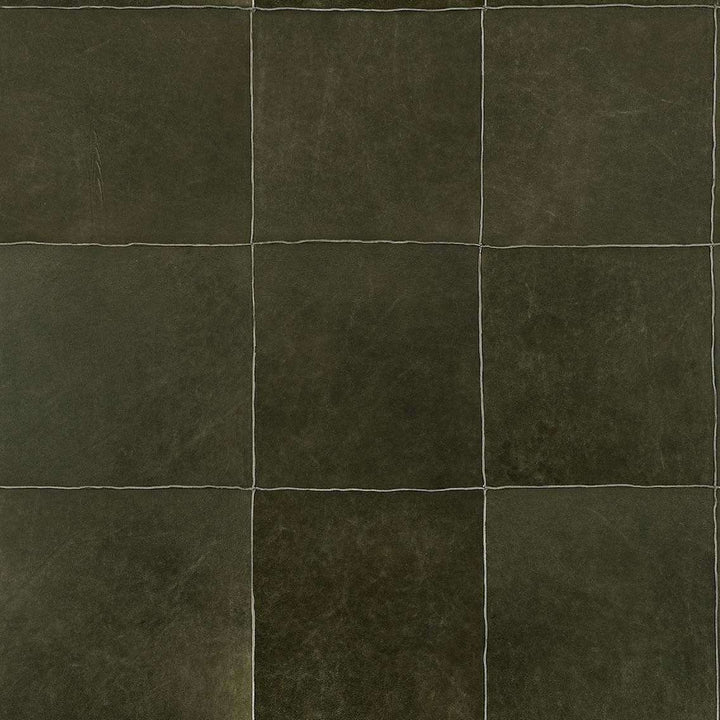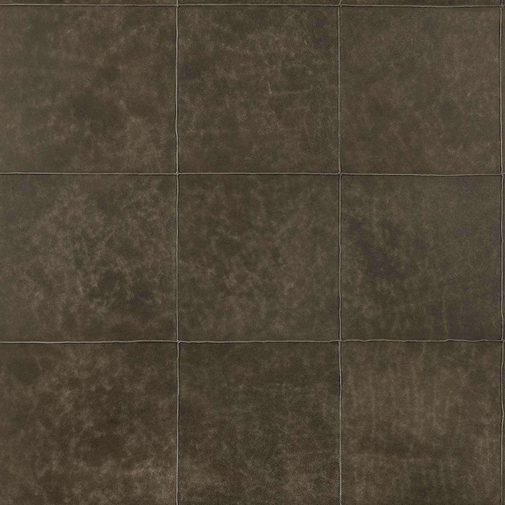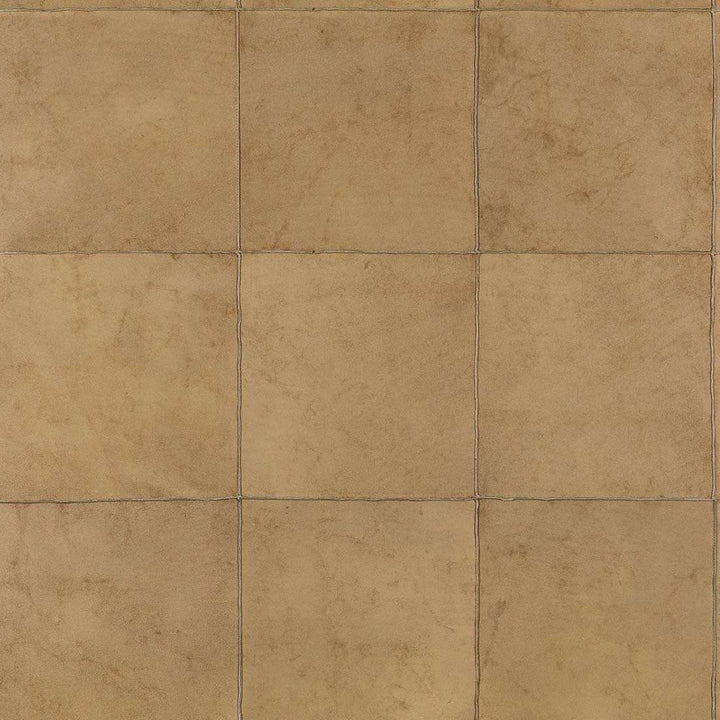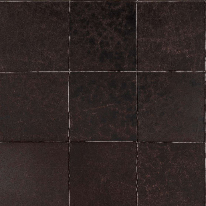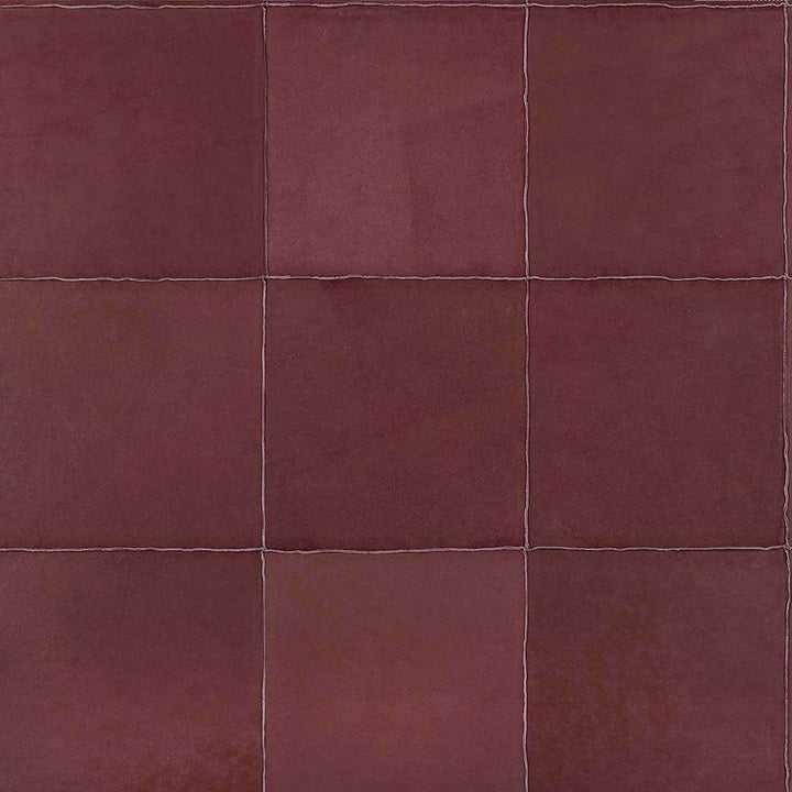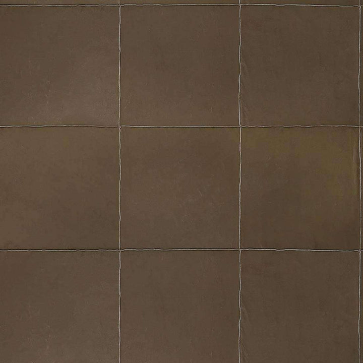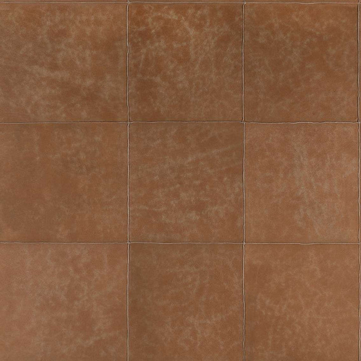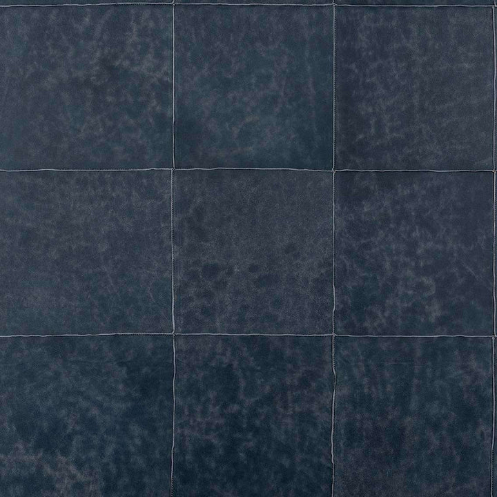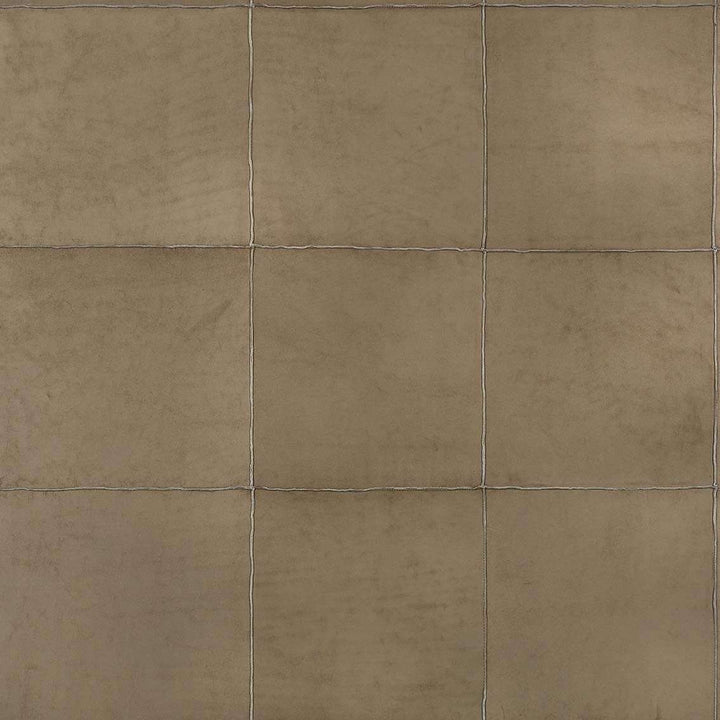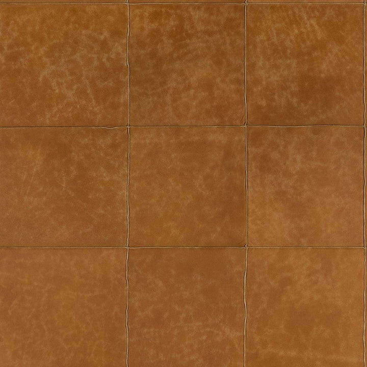 Aspect behang van Arte. Het behang is gemaakt van leer. De grove stiknaden geven de wandbekleding een extra stoer karakter. Elk stuk leer is uniek en in willekeurige volgorde aan elkaar genaaid, waardoor een gevarieerd patroon ontstaat. Verschillen tussen stalen en eindproduct kenmerken de natuurlijke schoonheid van het product.