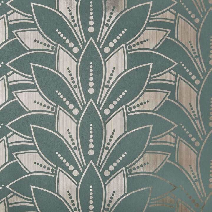 Astoria behang van 1838 wallcoverings. Dit behang is maximaal weelderig en geïnspireerd op op Art Deco. Het behang is bedekte met metalen texturen en wordt aangeboden in een decadent kleurenpalet. Royale, fluweelachtige structuren zorgen voor glanzende achtergrond.