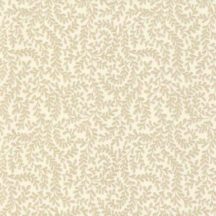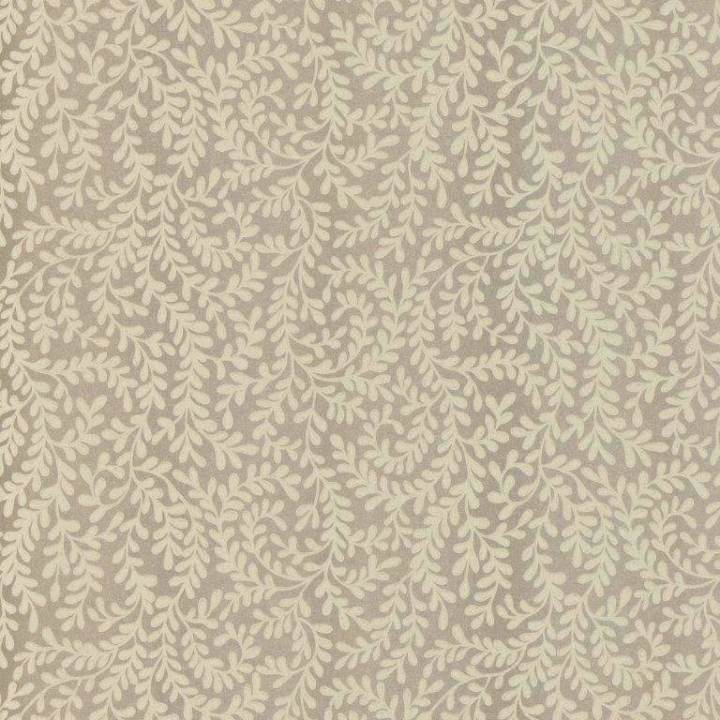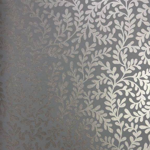 Audley behang van 1838 wallcoverings. Het bladbehang kronkelt als stromend water, waardoor een interessant design in landelijke stijl ontstaat. Het bladpatroon wordt benadrukt met witte inkt om een mooie met de hand geschilderde afwerking te geven, die de zachte grijze achtergrond prachtig complimenteert.