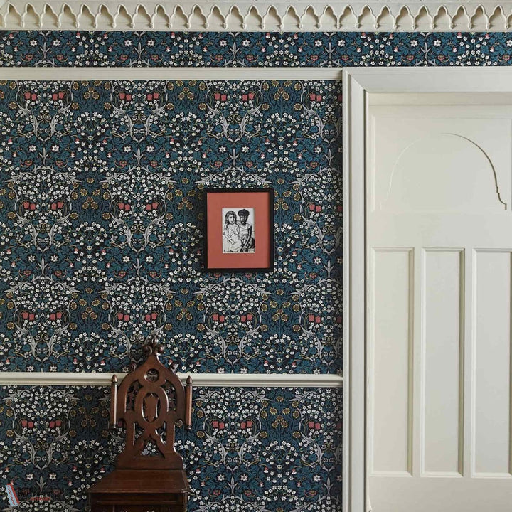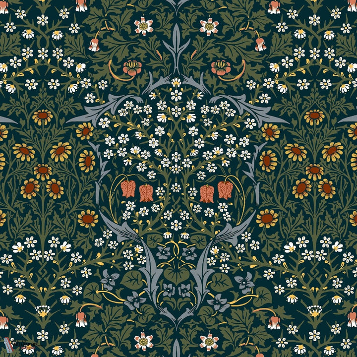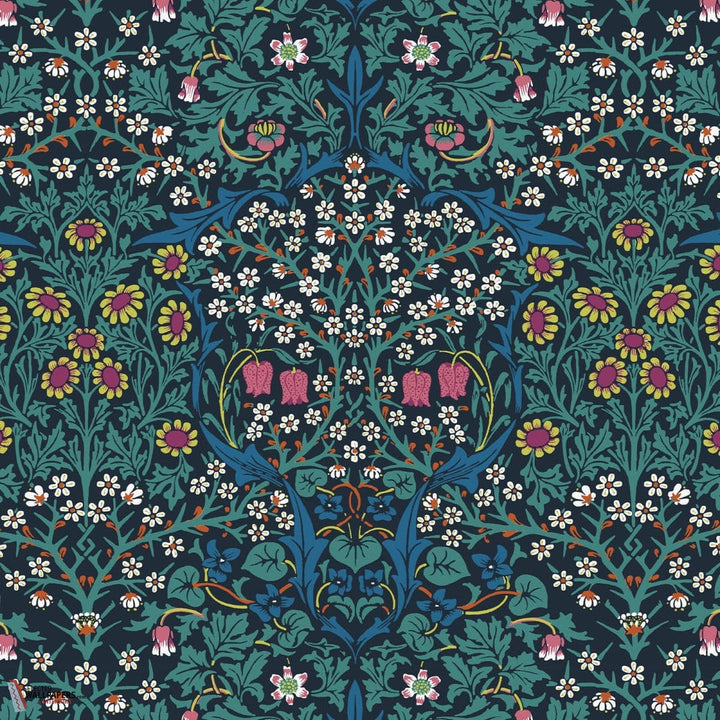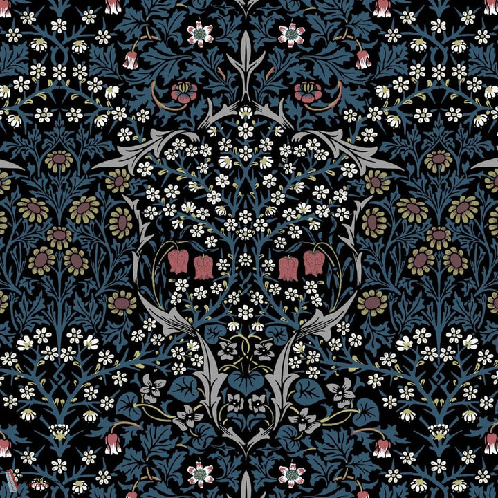 Blackthorn behang House of Hackney. Dit behang is onderdeel van de William Morris collectie. De Art Nouveau print met meidoorns, madeliefjes, tulpen en gebladerte in sprekende kleurstellingen. Behang Blackthorn House of Hackney
