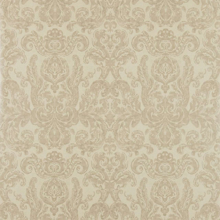 Brocatello behang van Zoffany. Dit meest iconische behangpatroon in het Zoffany-assortiment is oorspronkelijk geïnspireerd op een 19e-eeuws brokaatweefsel, geweven met metalen garens en verfraaid met borduurwerk. Het behangontwerp is bedrukt met lichtreflecterende inkten en subtiele texturen om een extra dimensie aan het ontwerp te creëren.