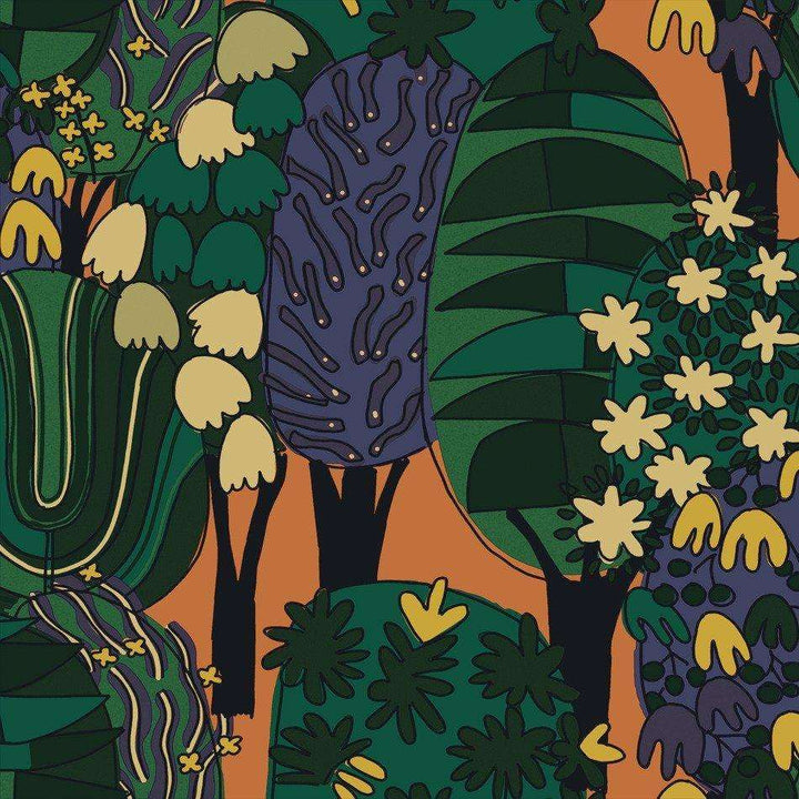 Brocéliande luxe behang van Elitis. Dit behang heeft een geïllustreerd ontwerp vol planten, bomen en bloemen. Kleurrijk en een echte eyecatcher is dit behang van Elitis.