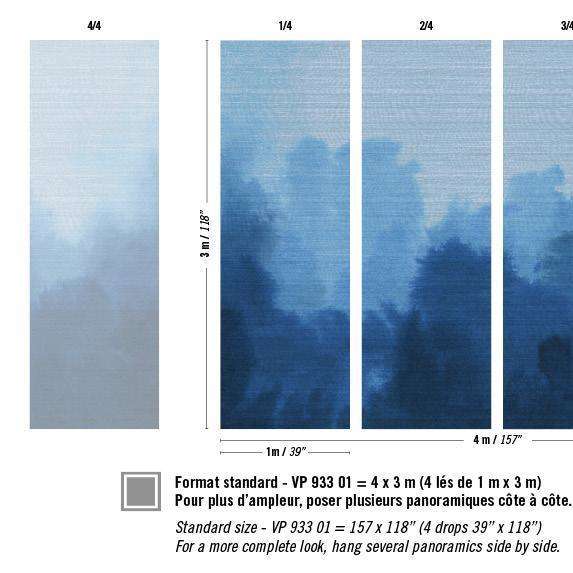 Brume luxe behang van Elitis. Dit behang is een luxe vinyl behang met een mistig landschap van een bos. De ondergrond van het panorama heeft de look van zijde en geeft het een natuurlijke uitstraling. De luxe van zijde met het gemak van vinyl, een prachtig decor.