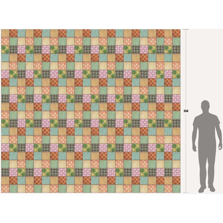 Candywall behang van Inkiostro Bianco. Dit behang zit vol vrolijke vierkanten in verschillende kleuren en materialen. Een leuk decoratief behang voor bijvoorbeeld een kinderkamer.