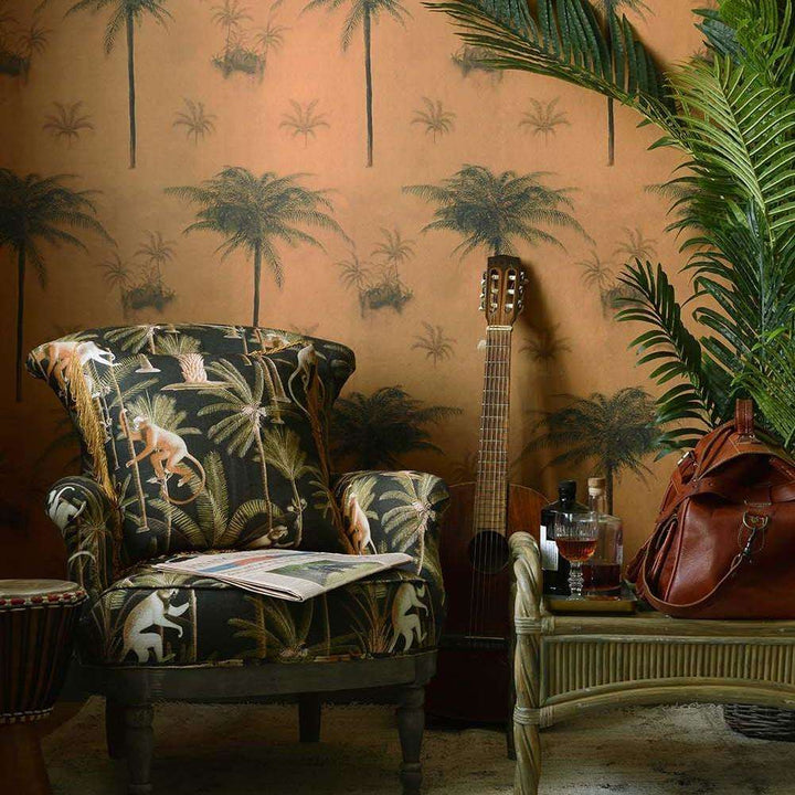 Cayo Largo Sunset behang van Mind the Gap. Dit behang brengt je naar de Cariben. Vol grootschalige palmbomen op een gewassen achtergrond die doet denken aan de Cubaanse zonsondergang. Exotisch en tropisch!