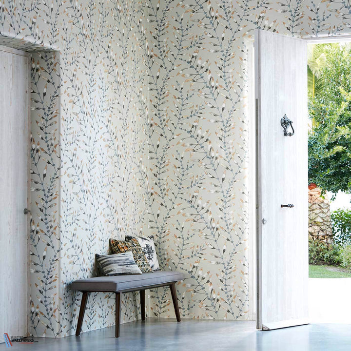 Chaconia behang Harlequin. Dit behang toont delicate zeeplanten op een effen achtergrond. Behang Chaconia Harlequin Colour 4 behangcollectie.