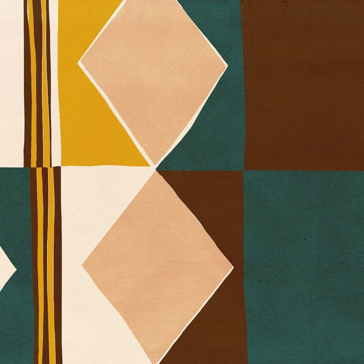 Chaotic Ordinariness behang van Wall & Deco. Behang op maat vol geometrie en kleur. Ruiten en vierkanten die elkaar onderbreken. Behang op maat Chaotic Ordinariness uit de Contemporary Wallpaper collectie 2022 van Wall & Deco.