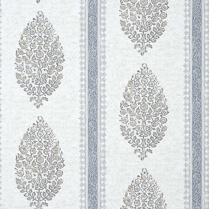 Chappana behang van Thibaut. Dit behang heeft een uiterlijk van strepen en verticale motieven afgeleid van Indiase stoffen. Behang Chappana Thibaut uit de Colony collectie.