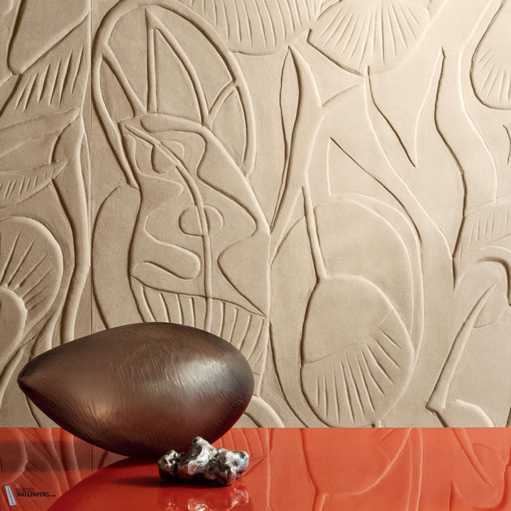 Het suède materiaal waarmee het Colosse Frutier Behang is vervaardigd, geeft de wanden een weelderige, zachte uitstraling die luxe uitstraalt. De fluweelachtige textuur van suède zorgt voor een sensuele ervaring die uitnodigt tot aanraking en bewondering. Suède voegt niet alleen een visueel rijke afwerking toe, maar het biedt ook een tactiele ervaring die de ruimte een gevoel van warmte en verfijning geeft.