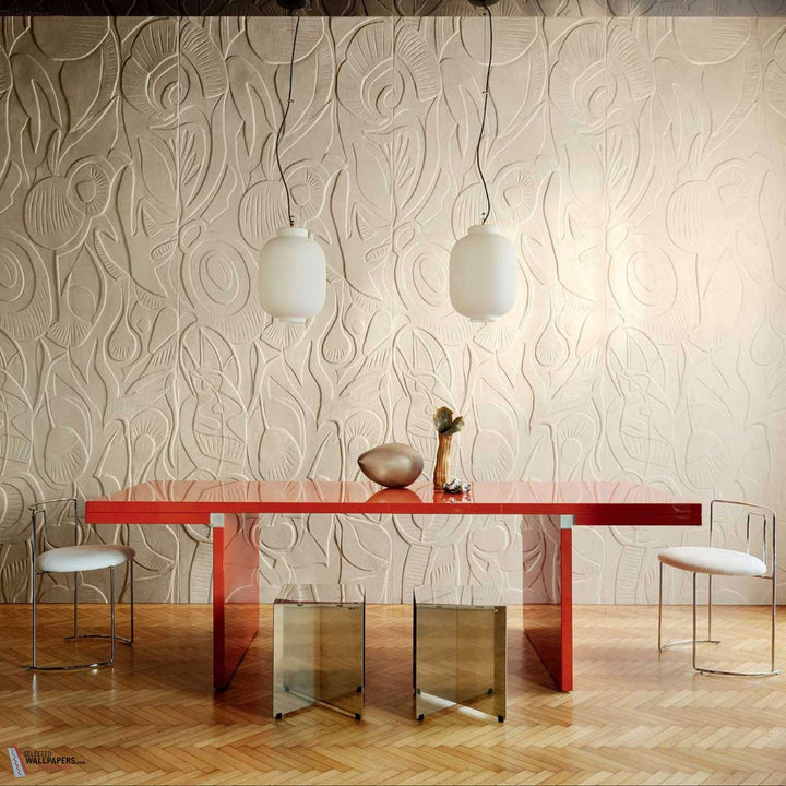 Het Colosse Frutier Behang van Elitis, onderdeel van de exclusieve Le Jardin d'Aloès Behangcollectie, is een meesterwerk van design en vakmanschap. Dit suède behang met 3D-structuur biedt niet alleen visuele pracht, maar ook functionele voordelen, zoals akoestische eigenschappen. Het is de perfecte keuze voor wie een verfijnd, luxueus interieur wil creëren met zowel esthetische als praktische kwaliteiten.
