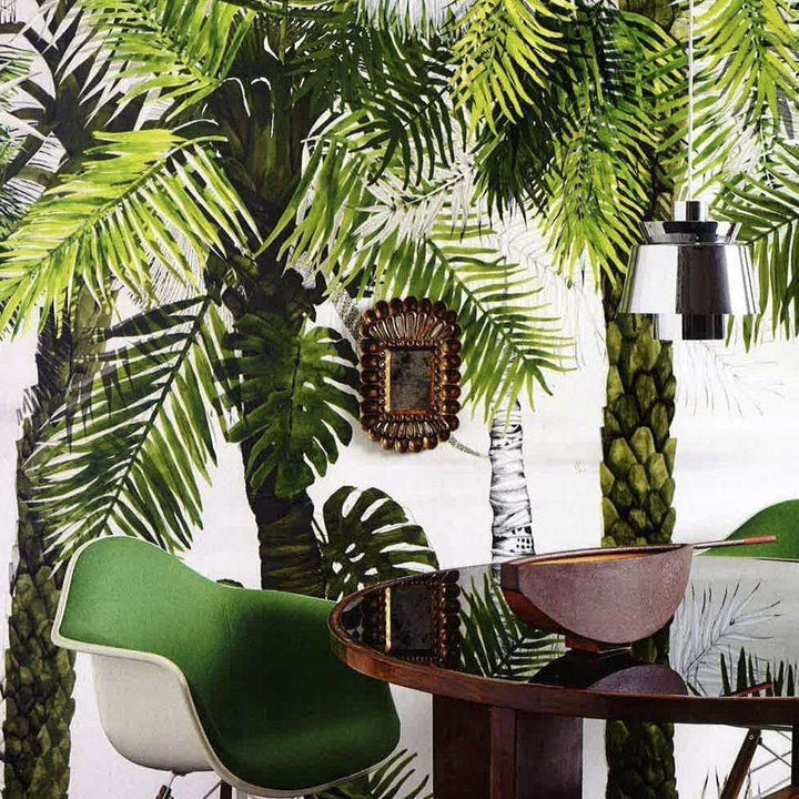 Croisette behang van Designers Guild. Palmbomen voor een landschap van open lucht. Het geeft dit luxe behang stijl. Illustratief weergegeven. Een prachtig behang voor een natuurlijk gevoel aan de wand.