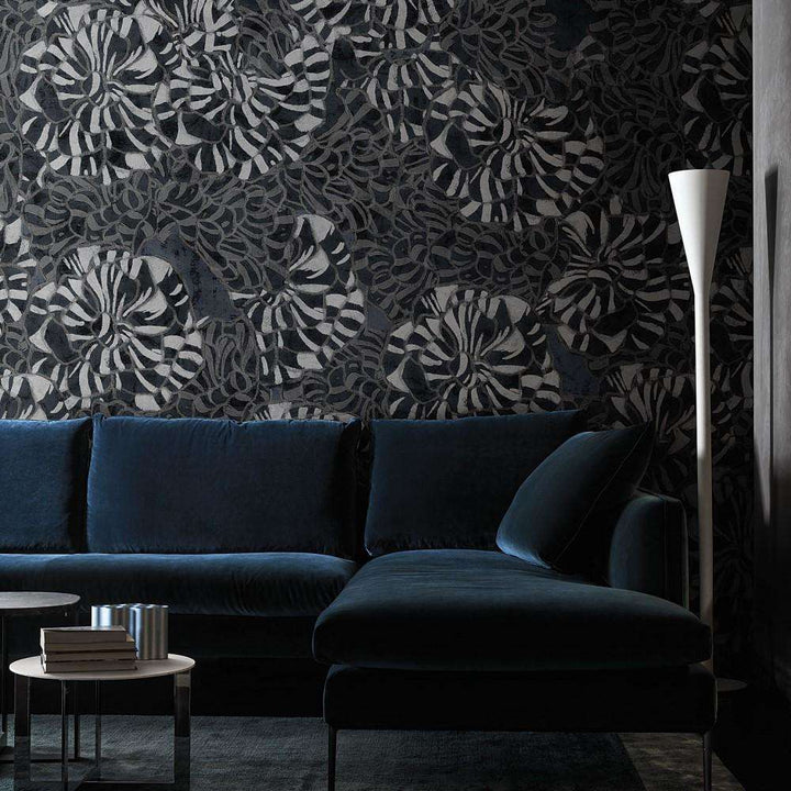 Dalia behang van LondonArt wallpaper. Dit behang zit vol in elkaar overlappende bloemen die een prachtige diepte creëren.