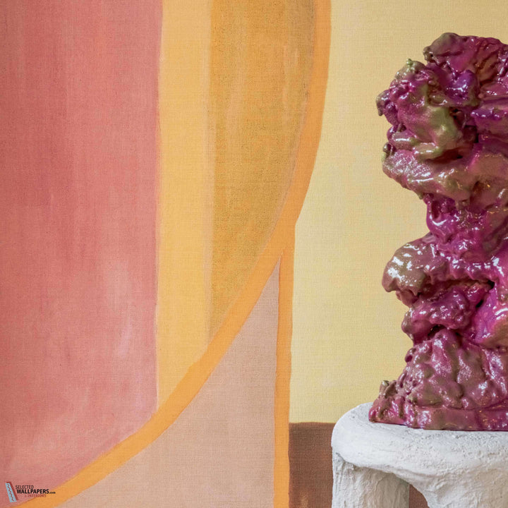 Eclats Cosmiques behang Elitis. Dit behang toont een handgeschilderd kleurrijk ontwerp vol rondingen. Een panorama die direct impact heeft in elk interieur! Behang Eclats Cosmiques Elitis Cordes Sensibles x Veronique de Soultrait behangcollectie.