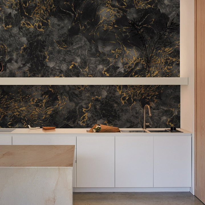 Ecumes behang Isidore Leroy. Dit behang op maat is een organisch ontwerp geïnspireerd op de textuur van de zee, al doet het ook denken aan een marmeren steen. Natuurlijk en sfeervol!