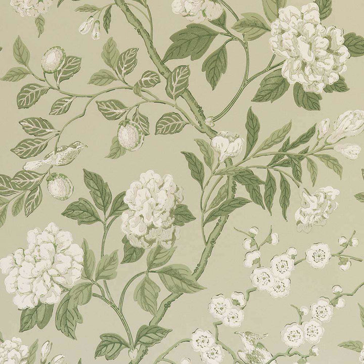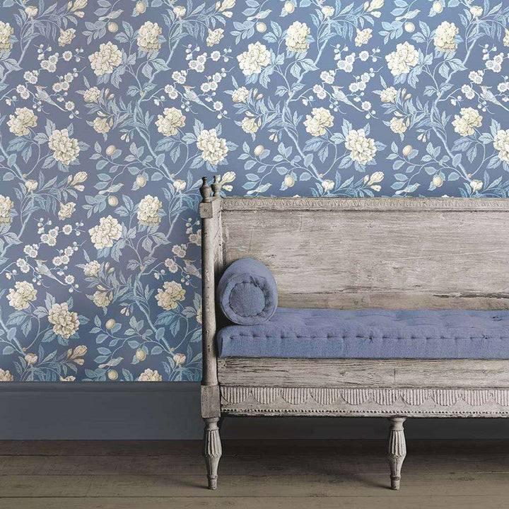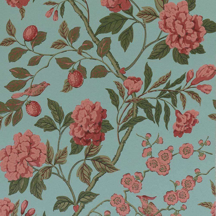 Emperor's Garden behang van GP&J Baker. Dit behang haalt zijn oorsprong ut hand geschilderd Chinees behang. Pioenrozen en kersenbloesem sieren het behang dat een klassieke uitstraling heeft.