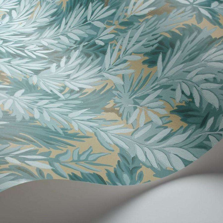 Florencecourt behang van Cole and Son. Een historisch behang ontwerp. Met dicht gebladerte in de kleuren groen, groenblauw, grijs en olijfgroen heeft dit behang een eigentijdse uitstraling gekregen door de combinatie van oppervlakte- en flexografische printtechnieken.