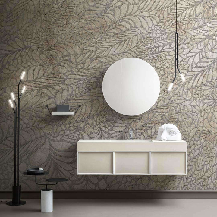 Fossil badkamer behang van Inkiostro Bianco. Dit behang op maat van Inkiostro Bianco is Italiaans vakmanschap. Samenwerkingen met diverse designers leveren keer op keer unieke eyecatchers op. Geef je wand een eigen en unieke aanblik met dit behang op maat.