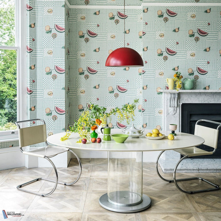 Om Frutta e Geometrico behang goed te kunnen beoordelen op kleur en materiaal adviseren wij om een sample te bestellen.