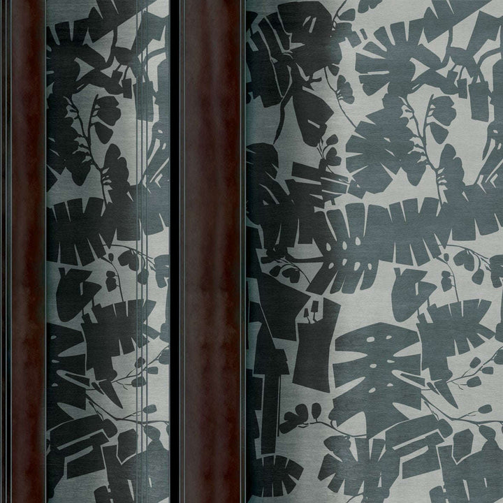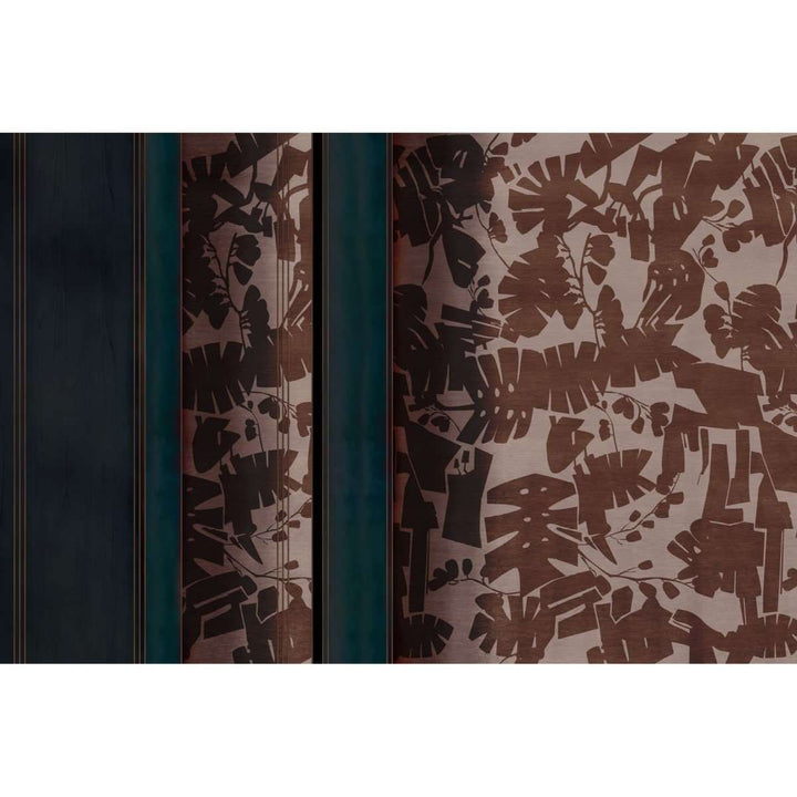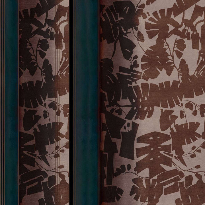 Future Perfect behang van Glamora. Dit behang op maat zit vol palmbladeren in warme tinten. Een sfeervol behang. Italiaans luxe behang op maat Future Perfect van Glamora.