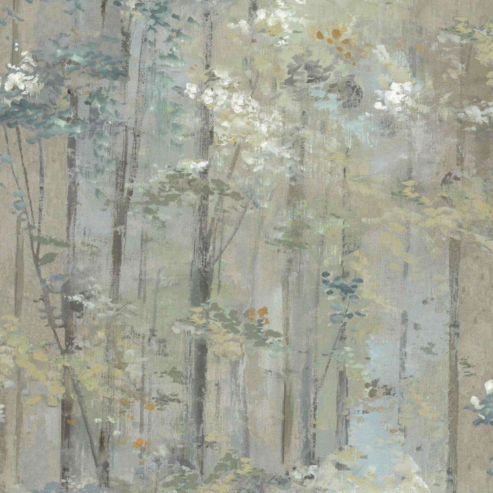 Zachte zonnestralen steken door de boomtoppen heen en creëren een sfeer van een boswandeling. Inspiratie ontleend aan een kunstwerk, herontdekt met diepe Teal penseelstreken en deppen van de bijbehorende kleurpartner, mandarijnoranje. Creëer een verfijnd gevoel van buiten, binnen. Dit intrigerende bosbehang neemt je mee op een geruststellende en rustgevende wandeling door het bos.
