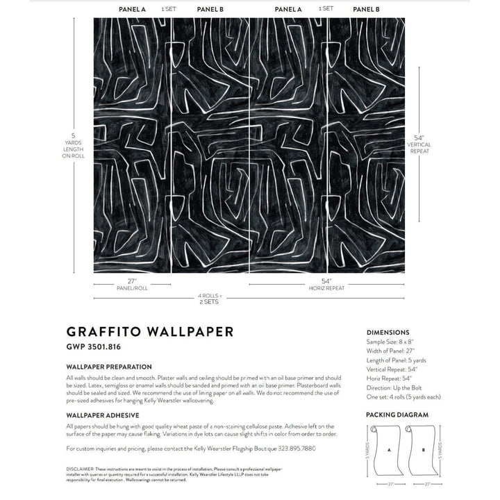 Graffito behang van Kelly Wearstler. Dit behang is een abstracte grafische print op grote schaal. Een behang die direct indruk maakt in elke ruimte, waanzinnig behang! Behang Graffito Kelly Wearstler.