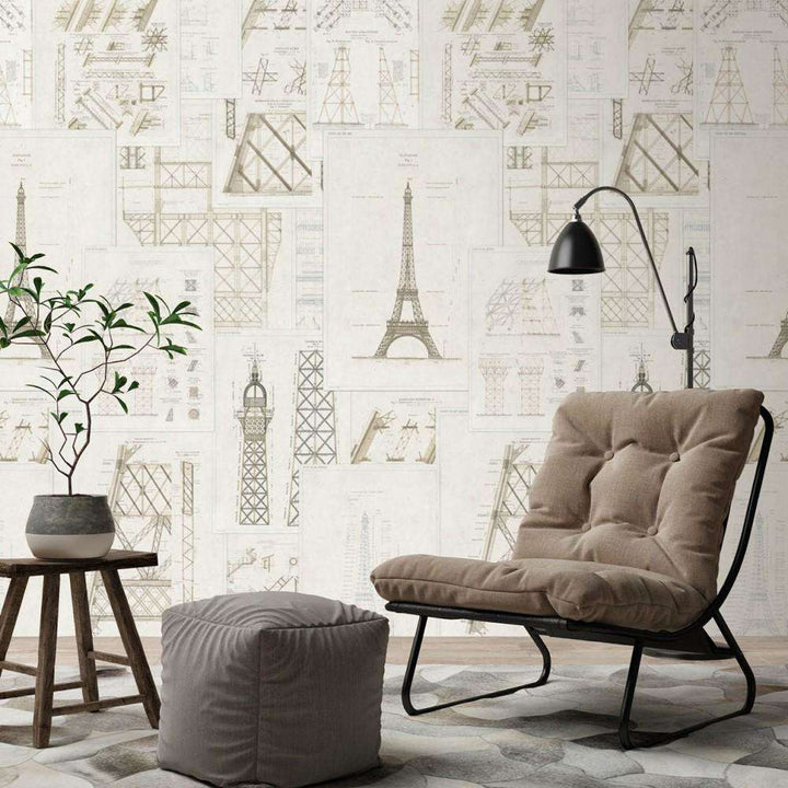 Grand Eiffel behang van Mind the Gap. Een behang dat je helemaal in Parijse sferen brengt. De liefde voor de stad komt tot uiting op dit Franse meesterwerk met in de hoofdrol; de Eiffeltoren.