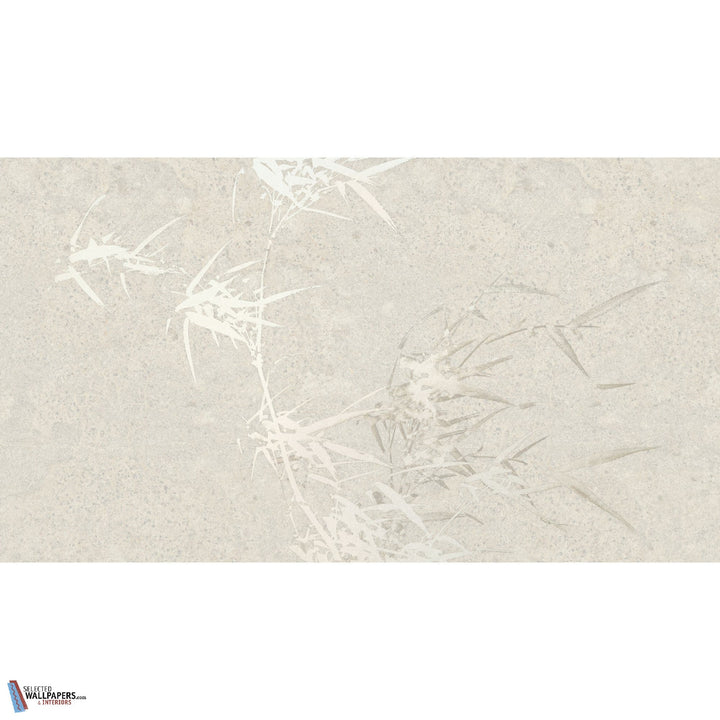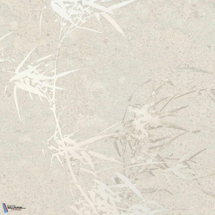 Harmony Hues behang Muance. Dit behang op maat in oosterse sferen heeft het Japandi gevoel. Subtiele bamboe bladeren op een ondergrond die lijkt op gesteente. Behang Harmony Hues Muance behangcollectie Edition 5 Lush.