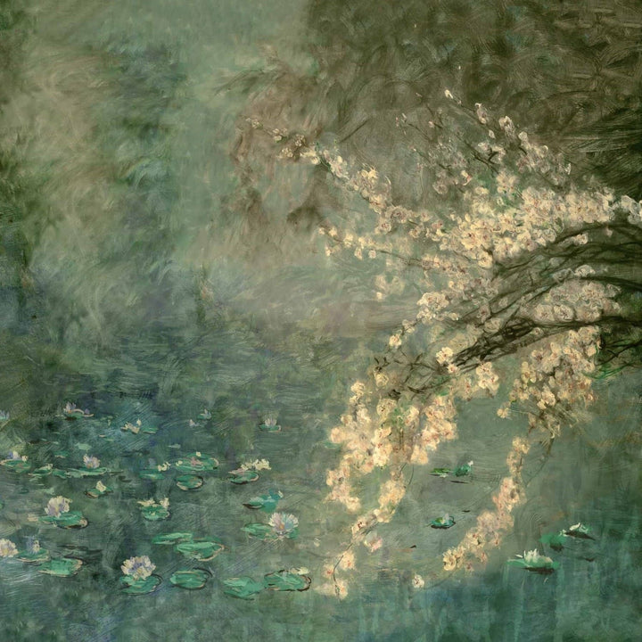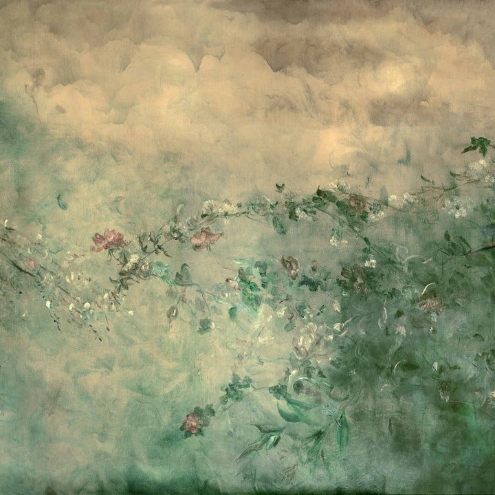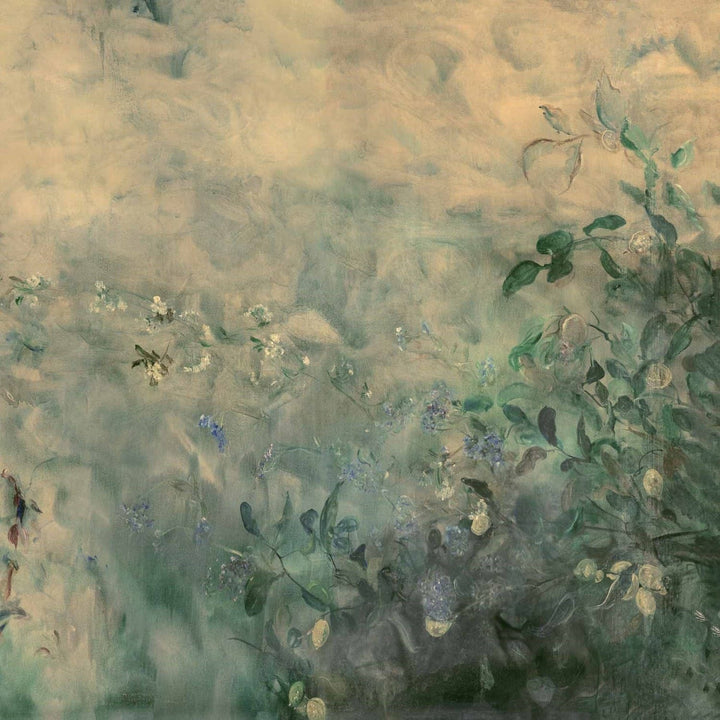 Heoridas Papyrus behang Coordonne. Dit behang toont vier liefdesscènes op prachtige achtergronden van plantmotieven. Elegante waterlelies en betoverende kersenbloesems. Textiel behang op maat dat gedrukt wordt op linnen of zijde materiaal. Behang Heoridas Papyrus Coordonne Aracne collectie.