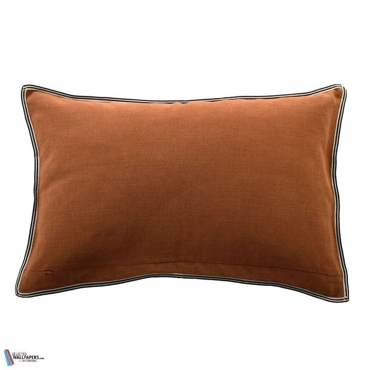 Housse de Coussin Coconut kussen Casamance. Een kussen gemaakt van de stof Coconut met een retro geometrisch geborduurd motief. De achterzijde betreft een effen velours stof. Kussen Housse de Coussin Coconut Maison Casamance.