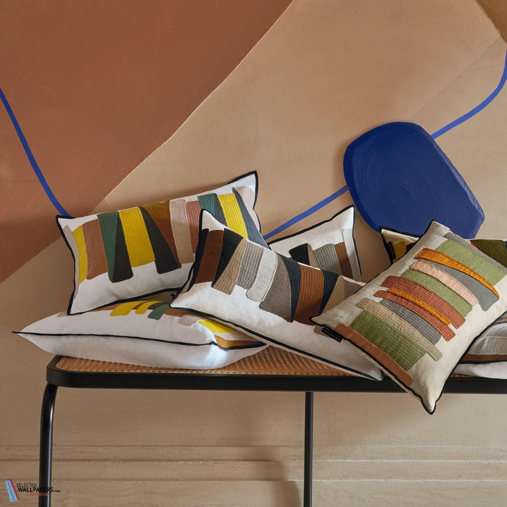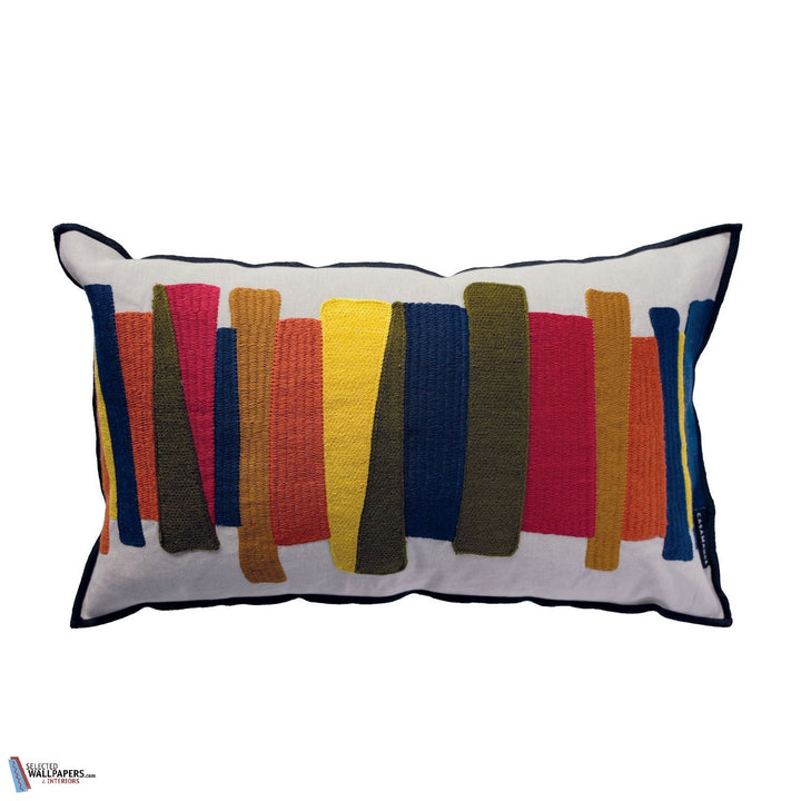 Housse de Coussin Valvidia kussen Casamance. Een kussen gemaakt van de stof Valvidia en heeft een geborduurd gestreept motief. De achterzijde betreft een effen linnen. Kussen Housse de Coussin Valvidia Maison Casamance.