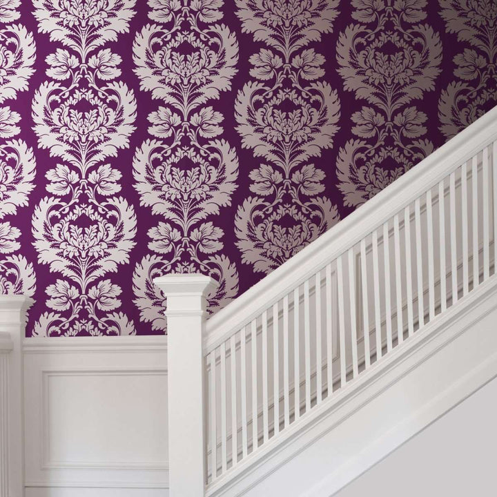 Hovingham behang van Cole and Son. Dit behang heeft een grootschalig vroeg Victoriaans damast. Geproduceerd als een tweekleurig ontwerp, verkrijgbaar in een serie kleuren.