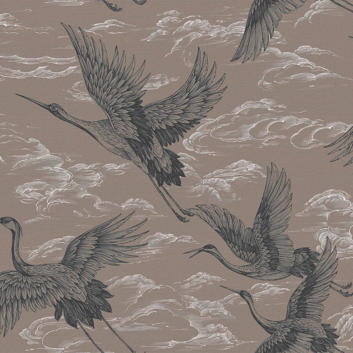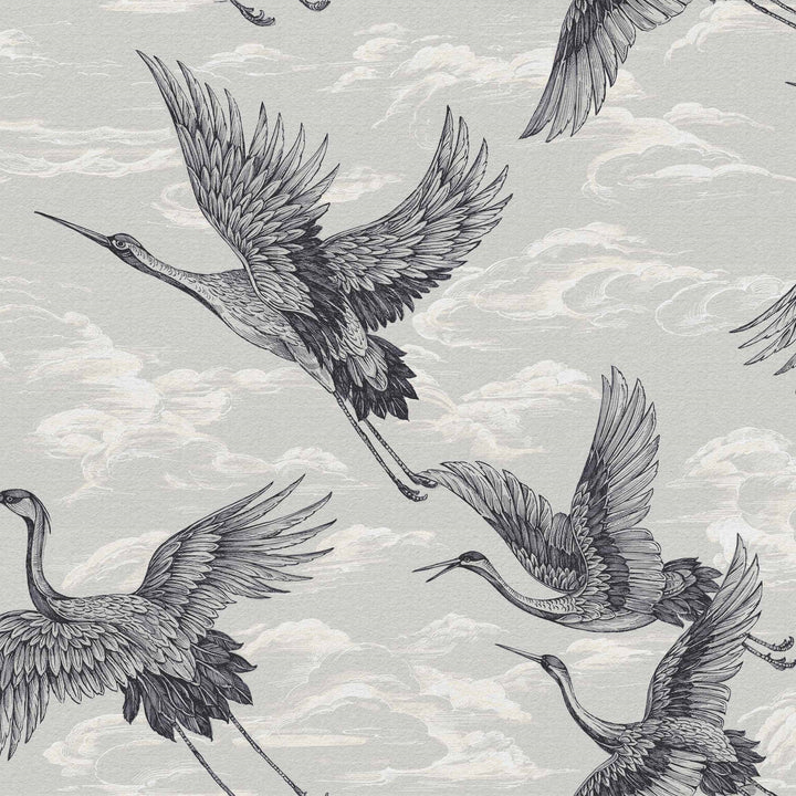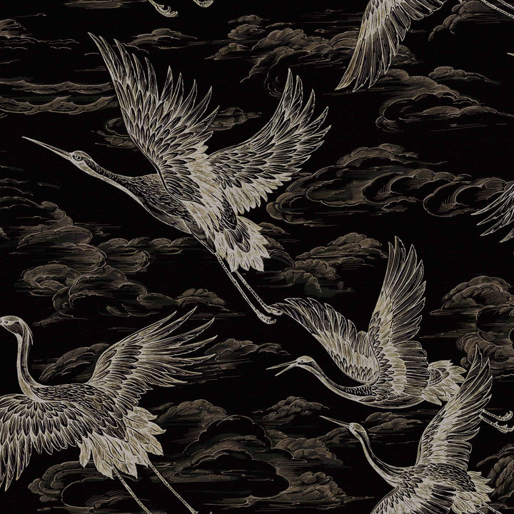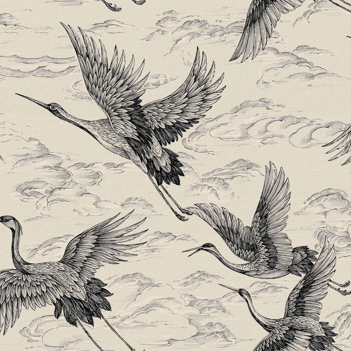 Imperial Ibis behang Coordonne. Dit behang toont een een patroon vol kraanvogels. Een sprekend ontwerp in ruime serie kleuren. Behang Imperial Ibis Coordonne Forbidden City behangcollectie.