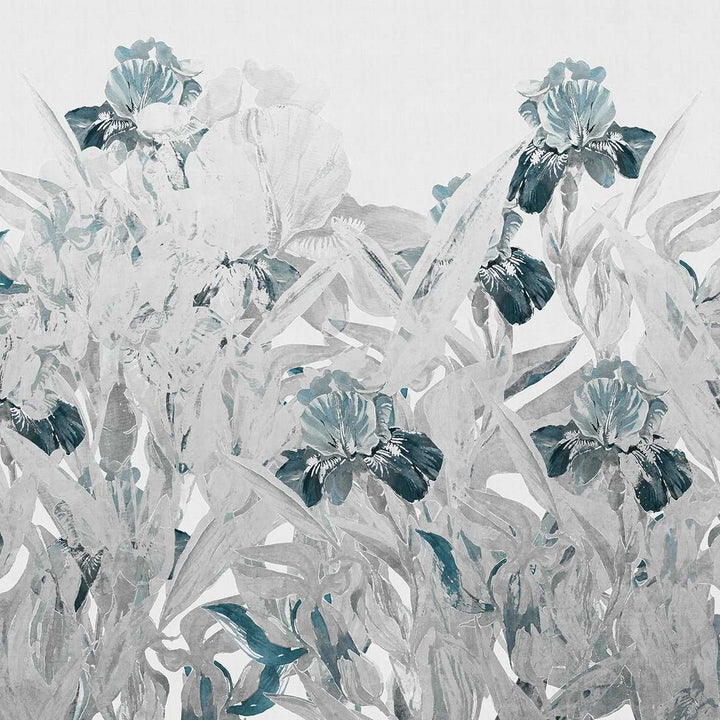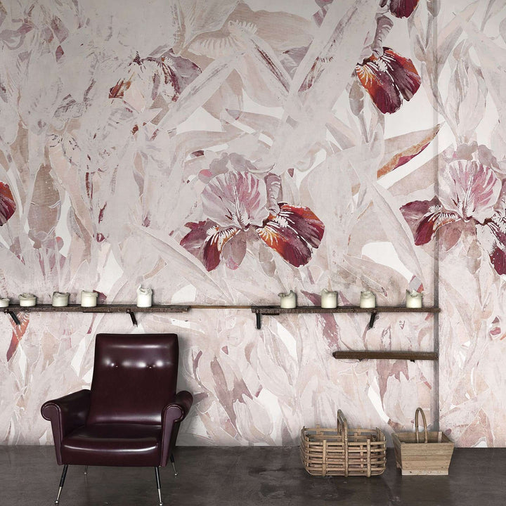 Iris behang van LondonArt wallpaper. Dit behang zit vol met artistieke bloemen die zich als penseelstreken over de wand bewegen. Fijne en ingetogen kleuren zorgen voor een natuurlijk elegant ontwerp.