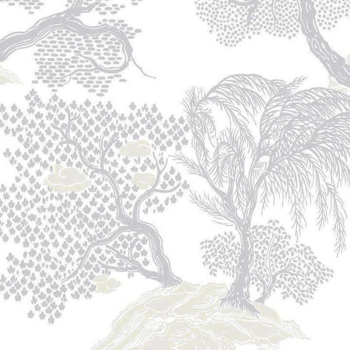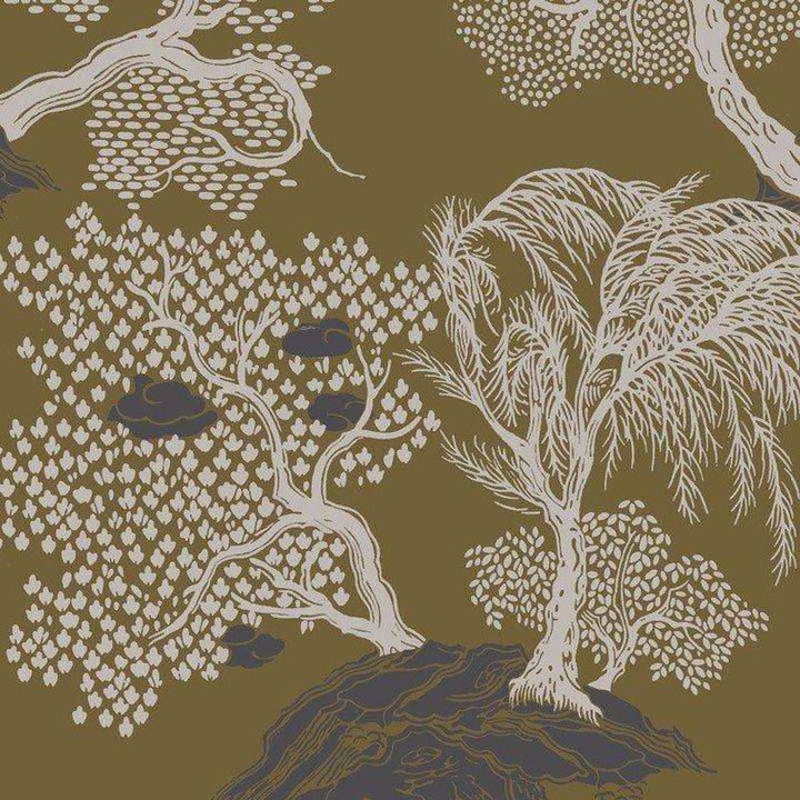Jardin Dasie behang van Isidore Leroy. Dit behang is een landschap van kalme en genereuze natuur. Een Aziatische/Oosters wereld vol lijnen, punten die subtiel bomen, valleien en wolken vormen.