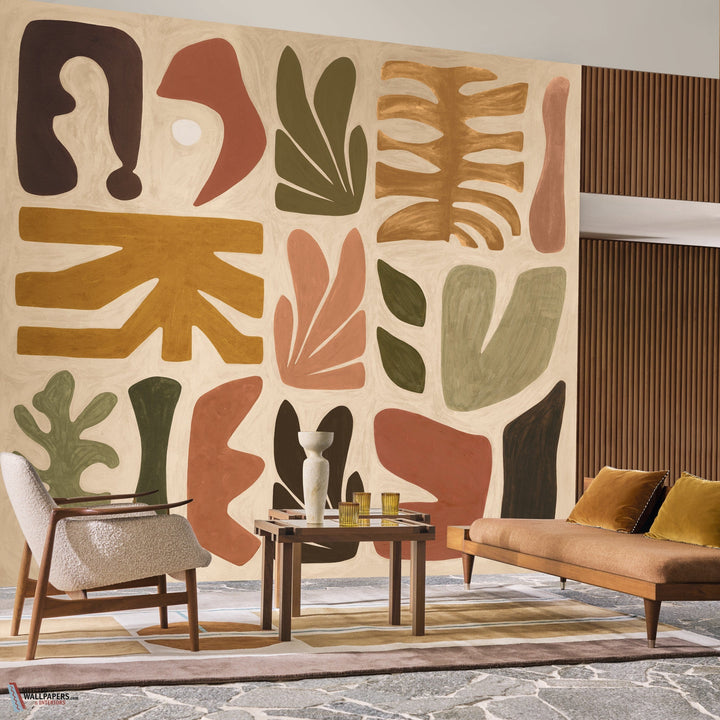 Jorge behang Casamance. Een behang met een uniek werk. Een knipoog naar Braziliaans design met deze modernistische beweging. Een wandpaneel vol geometrische rondingen en sprekende kleuren. Behang Jorge Casamance Modernismo behangcollectie.