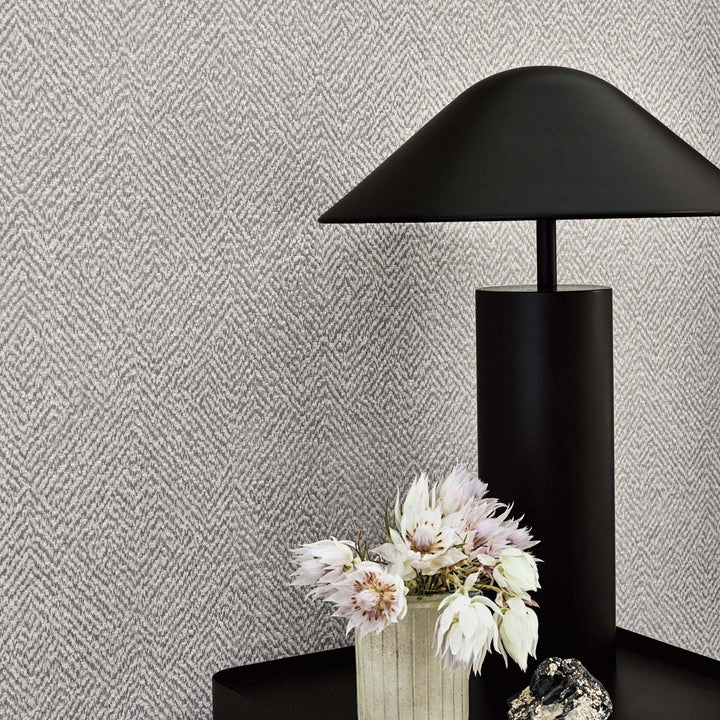Kali behang Romo. Dit behang heeft een onregelmatig visgraat patroon. Een prachtig luxe behang. Behang Kali Romo uit de Picota Wallcoverings collectie.